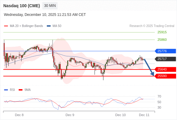 在 25776 之下,看跌,目标价位为 25640 ,然后为 25590 。