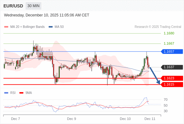 在 1.1657 之下,看跌,目标价位为 1.1623 ,然后为 1.1615 。