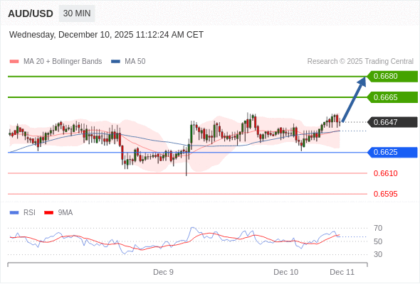 在 0.6625 之上,看涨,目标价位为 0.6665 ,然后为 0.6680 。