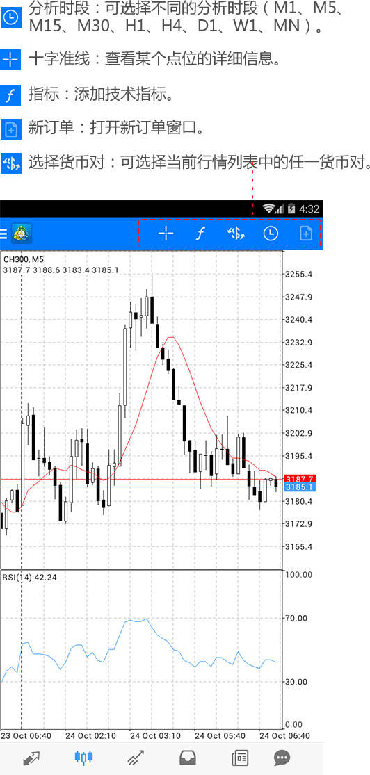 点击菜单栏的“图表”图标,将进入到图表页面。您可放大或缩小图表,也可通过水平滑动查看历史价格。